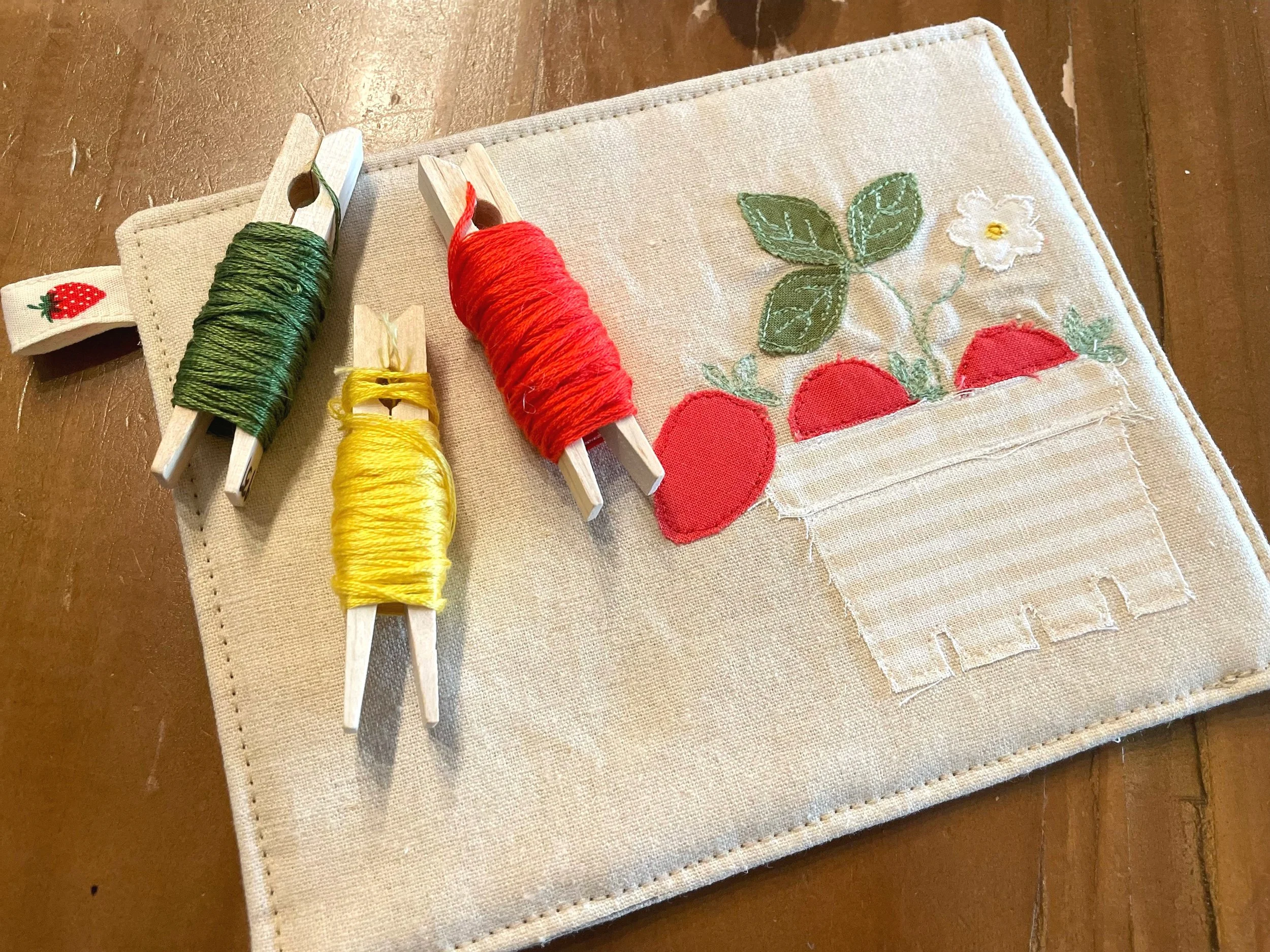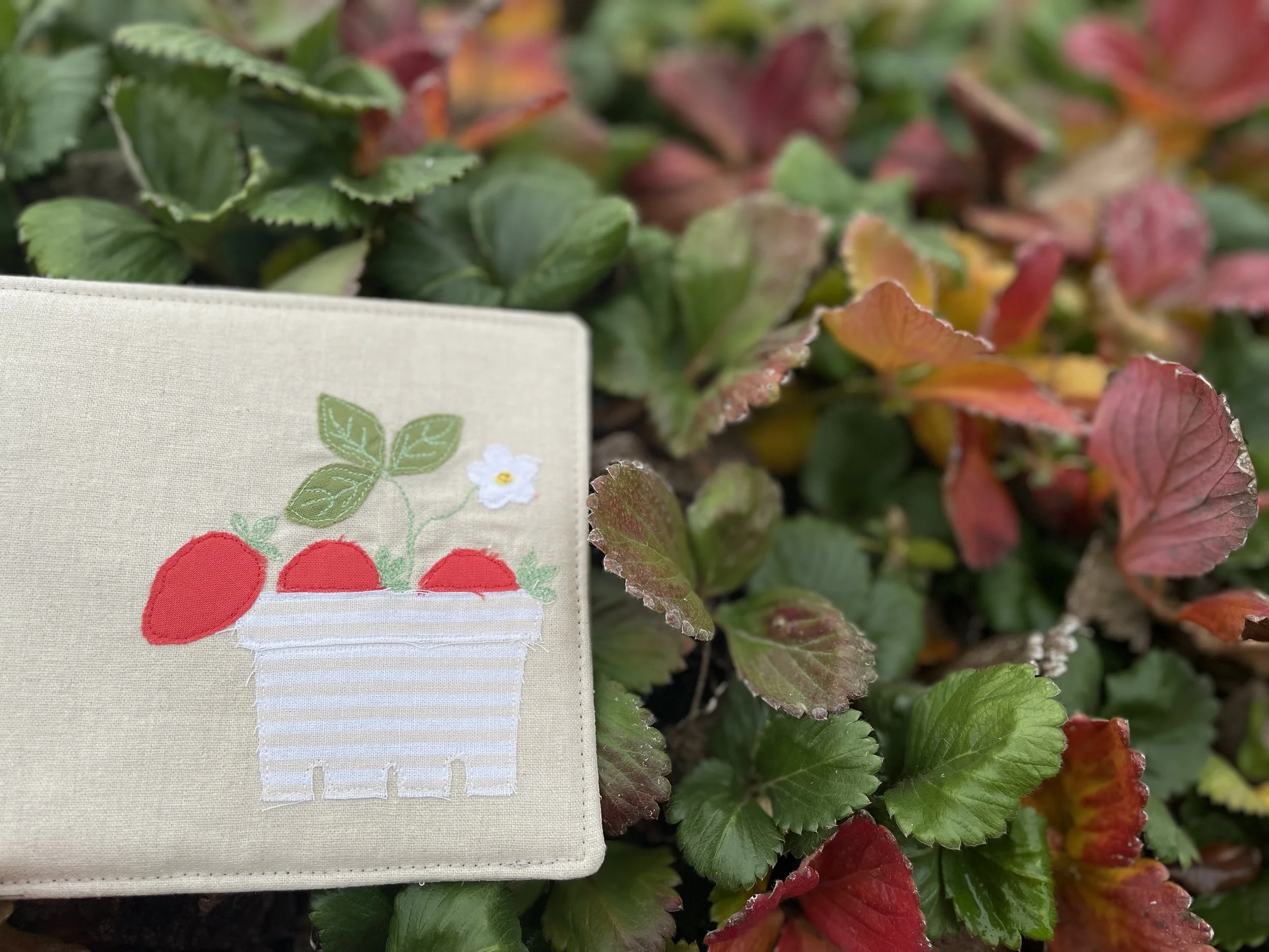 And yes, I realize that strawberries are not in season at all and that this is an interesting choice for a winter project. I was working on making some new potholders for my grandparent because the ones I made for them a couple years ago have been well loved and slightly barbequed :) But! as I was looking at my saved pins for potholder inspiration (that’s a phrase I never thought I would use!) I came across this tea mat made by Minki Kim. I love her method of sewing illustration and would like to try to use it more. It isn’t the most durable decoration and not good for anything you’re gonna machine wash but it holds up fine to normal use. So… to make a long story short this was just a fun impulse sew that distracted me from my task of making actual functional potholders.